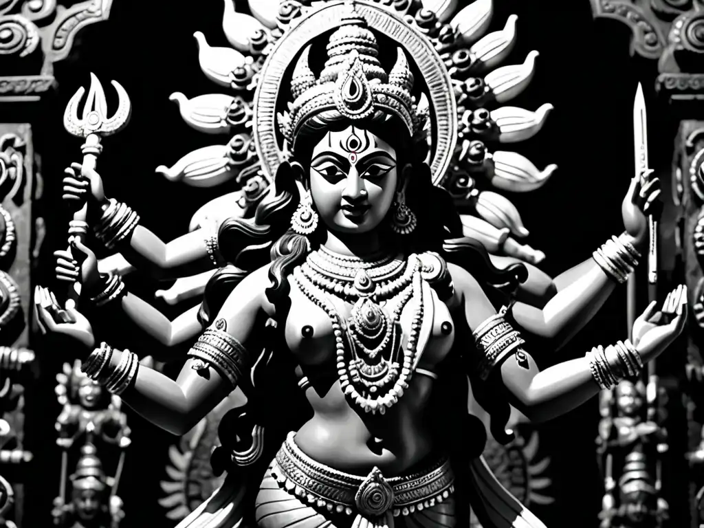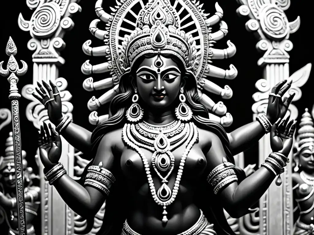 La figura de la Diosa Kali es fundamental en la mitología hindú, donde su papel como deidad de la destrucción y la renovación la convierte en una figura venerada y temida, cuyo simbolismo trasciende la dualidad para abarcar la totalidad del cosmos y la trascendencia espiritual.